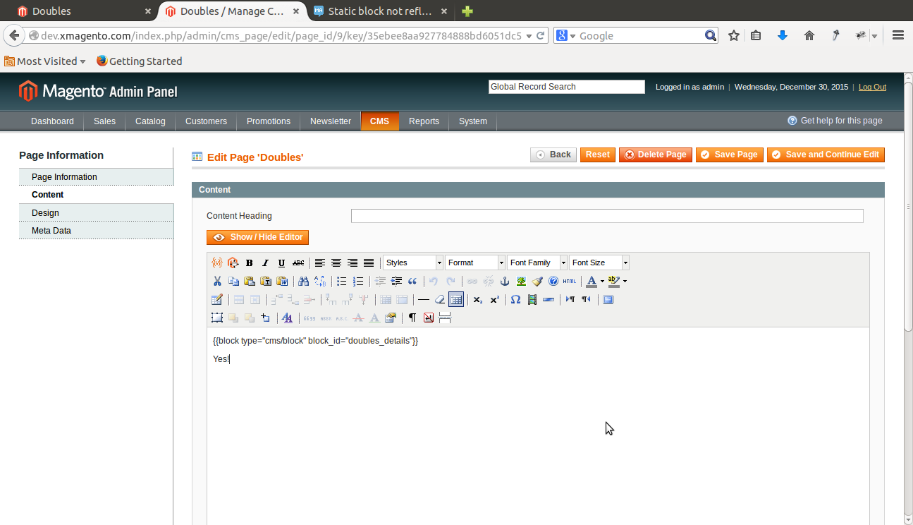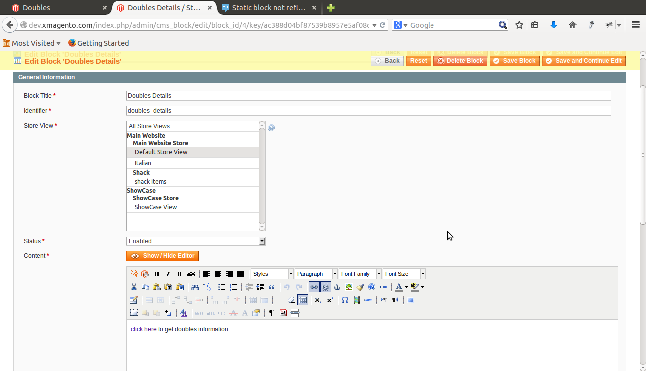 我刚开始做magento/admin。我正在尝试在我的CMS页面中显示我的静态块,但是它不起作用。我试图找出答案在谷歌和堆栈交换,但没有运气!谁能请help.Thanks。