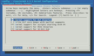 为了支持在AARCH64内核上运行ARM32-Linux程序,应该选择内核中的选项: