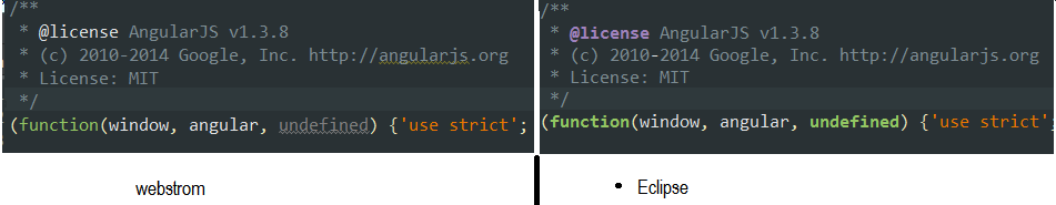 我试图使我的WebStorm和Eclipse可视化代码表示相同。