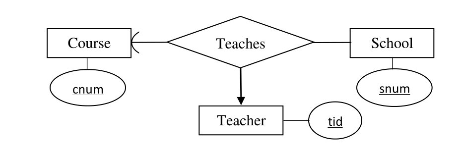 根据我所学到的,最后一张图表说:“每一对学校和老师,就有一门也是唯一的课程。”因此,如果我有3所学校,3名教师和3门课程,就会有9个三胞胎的教学关系。第一个图表改变了什么?在最后一张图中,有什么样的两个三重奏,不能在第一个图中?