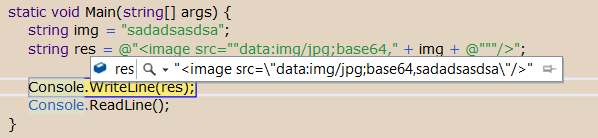 }在调试窗口中,您将看到字符串‘’不是是否包含反斜杠(0x5C),如所需:3C < 69 i 6D m 61 a 67 g 65 e 20 73 s 72 r 63 c 3D = 22 " 64 d 61 a 74 t 61 a 3A : 69 i 6D m ...