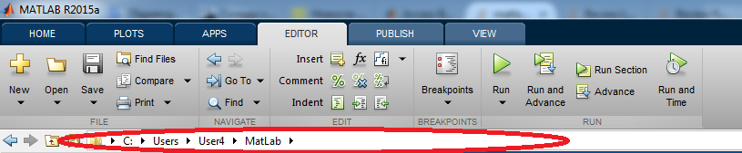 我只是犯了同样的错误。答案是:'C:\Program \ MATLAB \r2012a\bin\644A5000‘您的MATLAB工作区现在就在这里--您可以在MATLAB中的地址工具栏中看到它(在主菜单下)