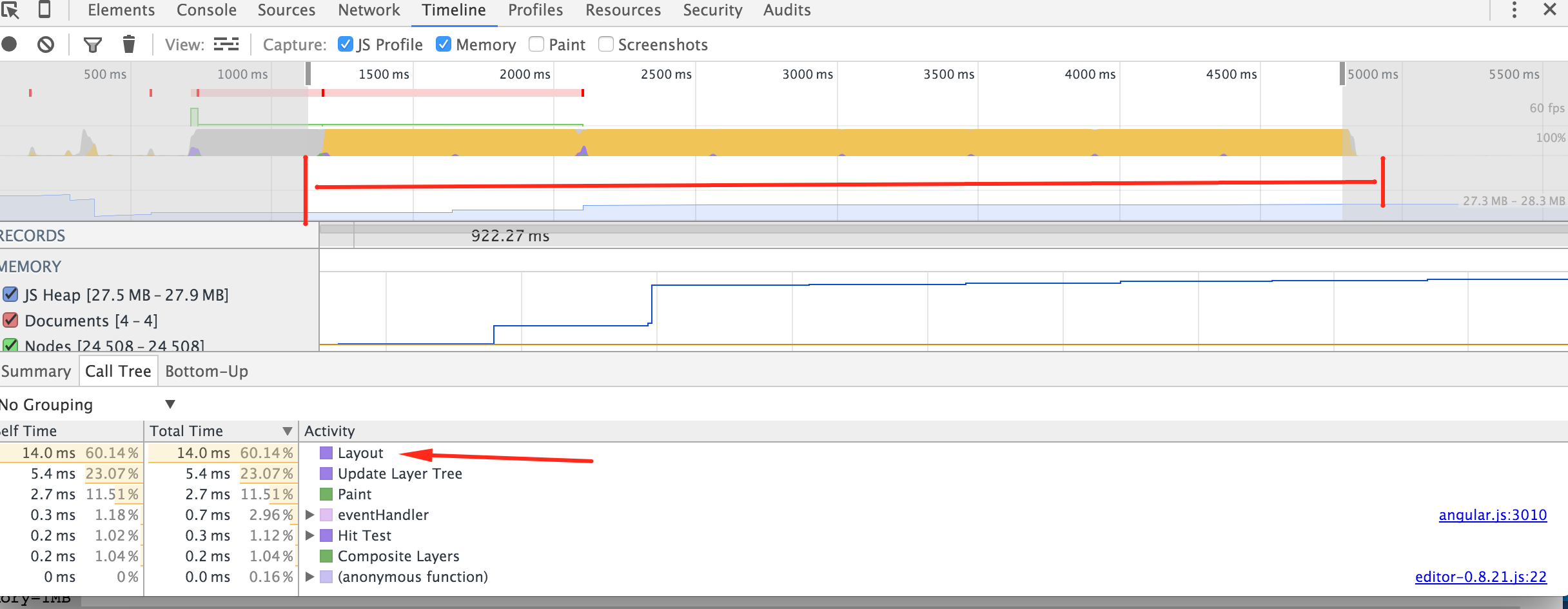 注意,类似的性能问题可能是由铬虫引起的,而不是由角度应用引起的。