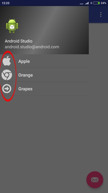 我不知道如何在navigation view中使用图标字体来获得标记的图标。