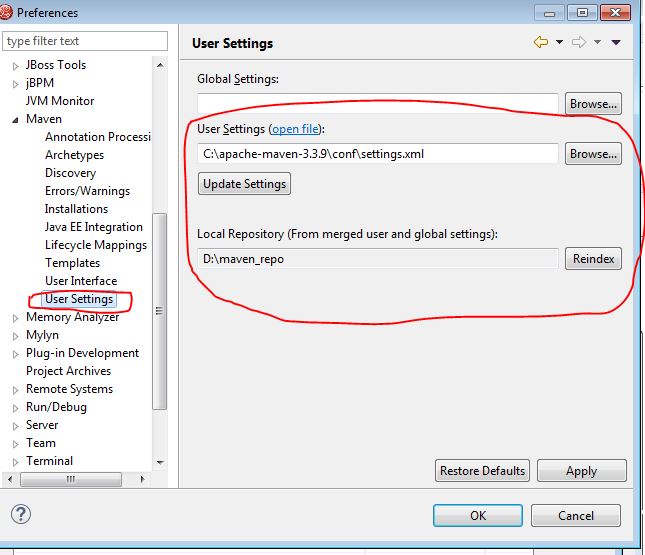 因此,如果您的系统上有项目可用,请删除任何特定于Eclipse的文件(通常只有.classpath、.project和文件夹.settings),它们是由mvn eclipse:eclipse生成的,您不希望它们干扰这里描述的“适当”导入过程。然后在Eclipse内部,使用File > Import > Maven >现有的Maven项目导入项目。这将导致Eclipse和maven之间更好的集成,包括在更改pom时自动更新Eclipse构建路径。