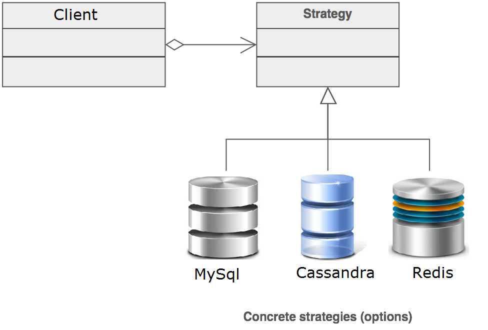 是战略设计模式。它定义了一系列算法(在您的例子中是DB),封装每个算法,并使它们在运行时可互换。策略允许算法独立于使用它的客户端。