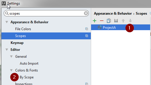 另一种可能的解决方案可能是为项目创建不同的作用域并应用自定义颜色。注意:我更多地认为这是一种解决办法,因为(IMHO)作用域应该主要用于“in”。这种解决方案的缺点是,您还必须处理内建作用域,如Test。