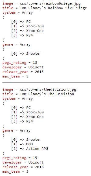 "genre" => ["Shooter", "MMO", "Action RPG"],