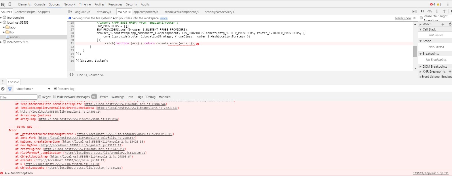 at Object.execute (http://localhost:55555/lib/system.js:5:6218)BrowserDomAdapter.logError @ angular2.js:23083