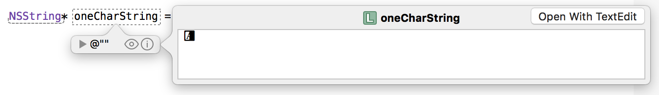 NSString* oneCharString = [@"" substringWithRange:NSMakeRange(0, 1)];调试器显示: