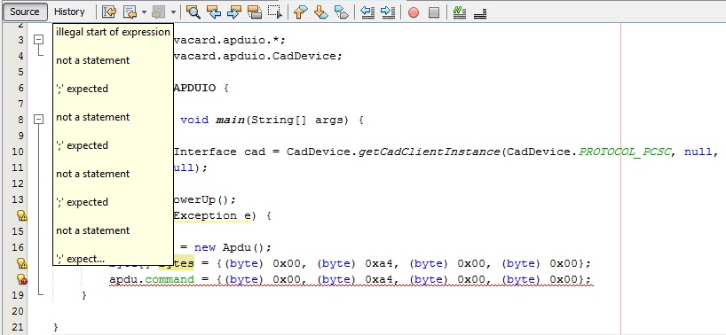 在以下程序中,command是Apdu类中的字节数组字段。问题是我的IDE (Netbeans)标记了
