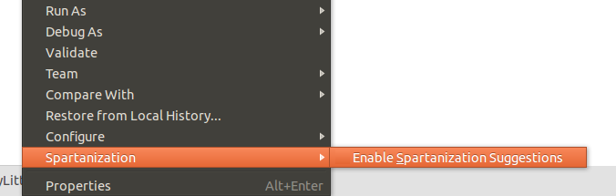 右键单击Eclipse中的项目,然后勾选Spartanization -> Enable Spartanization Suggestions