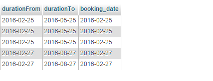 如果用户选择了工期,从=2016-02-25,持续时间=2016-08-27,我需要得到所有的5行