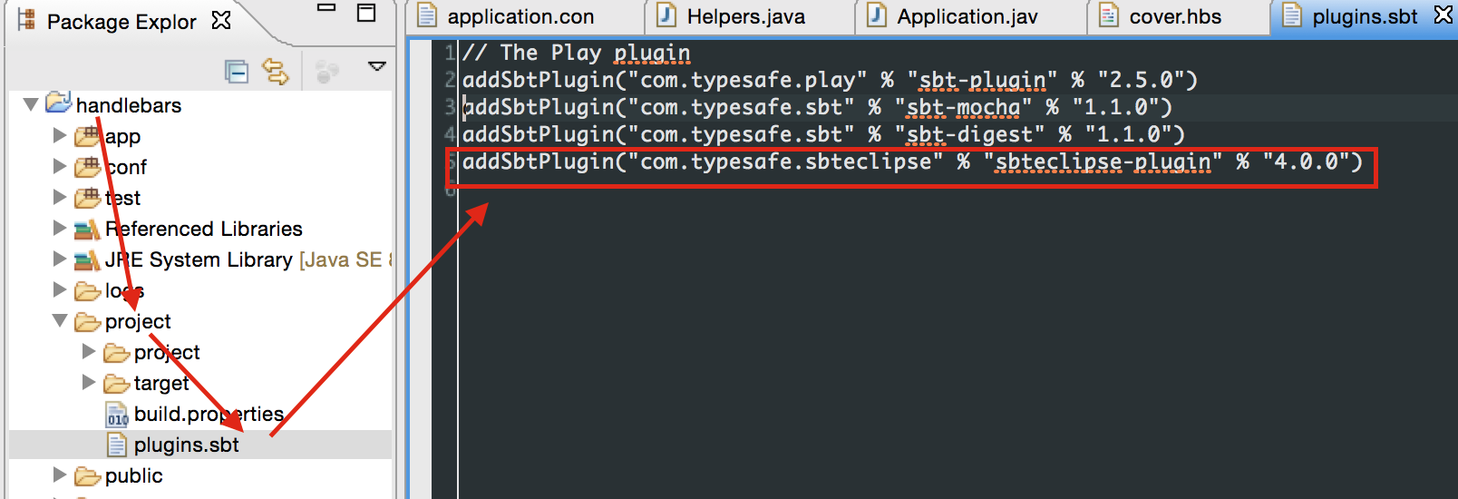 project/plugins.sbt和build.sbt,然后运行activator eclipse或sbt eclipse。然后,您应该能够通过File -> Import -> Existing Projects into Workspace在Eclipse中导入该项目。