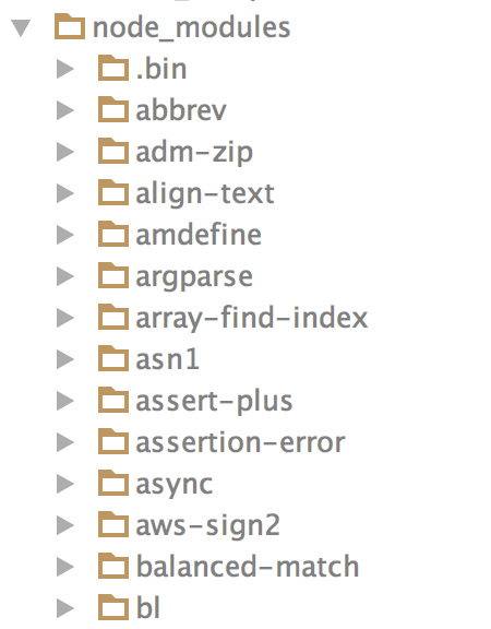 npm install命令将安装dev依赖性和依赖项中列出的包。您有5个模块,它们将被安装在dev依赖性中。此外,这5个模块也将有他们自己的依赖关系,所以他们也将被安装。