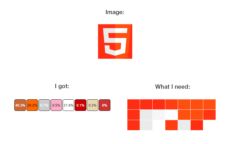因此,首先,我需要将您的PNG转换为NetPBM的PPM格式,这样pnmquant工具才能工作--为此我将使用pngtopnm。然后,我想把颜色提取成一个样本,然后放大样本,这样你就可以看到比提取的21个像素更大的东西--我会用ImageMagick来表示它,我想对它做一个文本表示,这样你就可以看到数字,我会用ImageMagick来表示它。