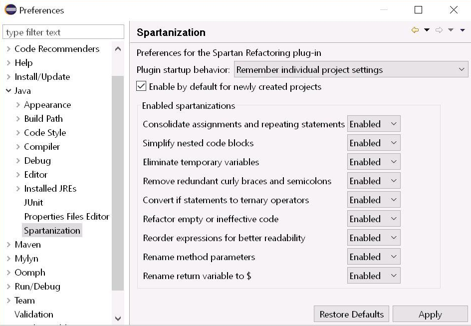 从版本2.3开始,您可以通过转到EclipsetoPreferences->Java->Spartanization