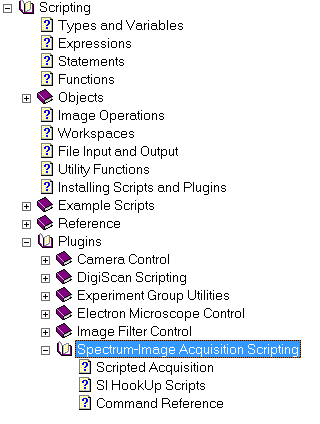 如果您安装了频谱成像插件,那么F1帮助文件将在这里有一个关于STEM脚本命令的部分.