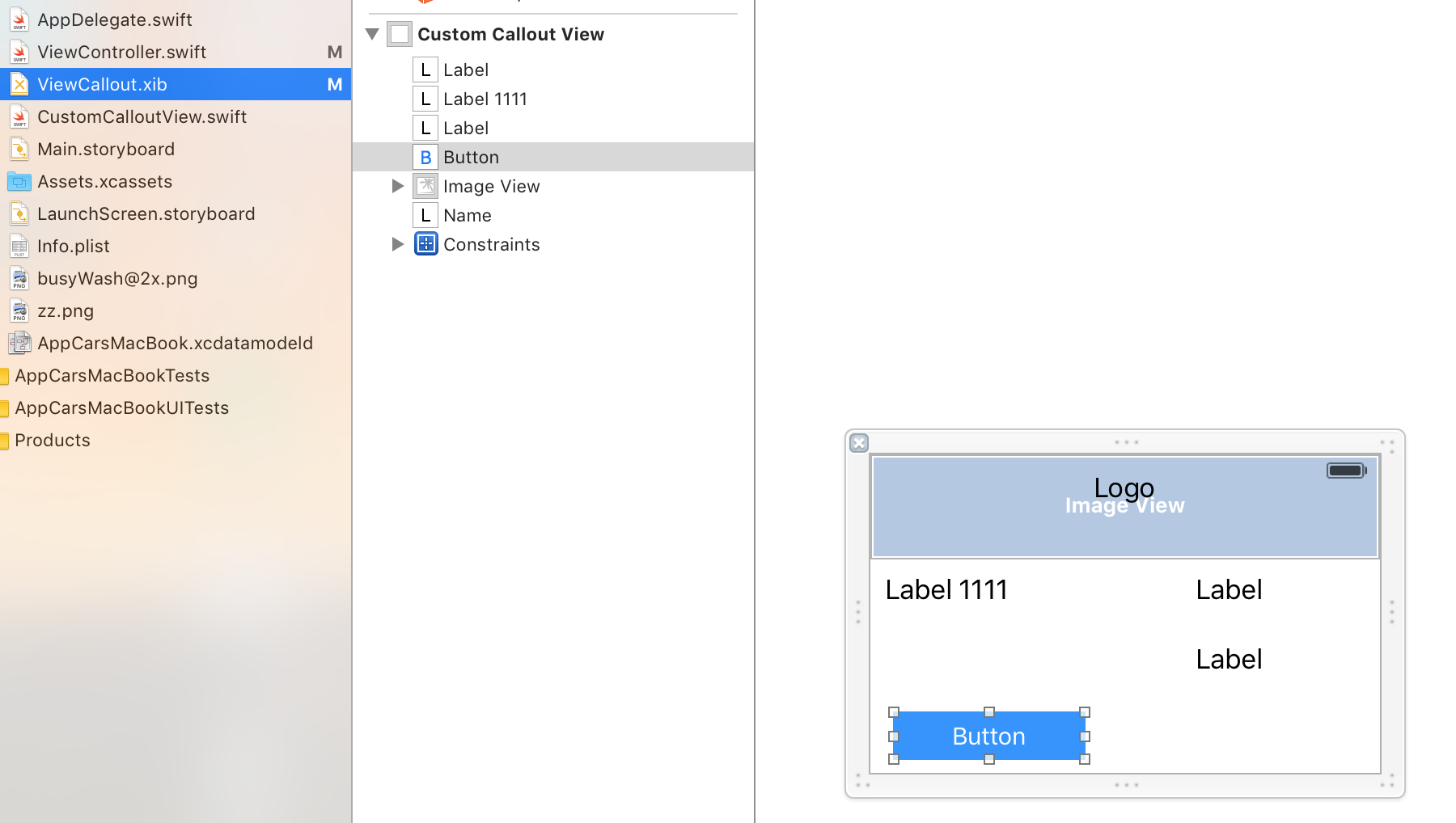 class CustomCalloutView: UIView {3)我为我的自定义引脚标注创建了.xib