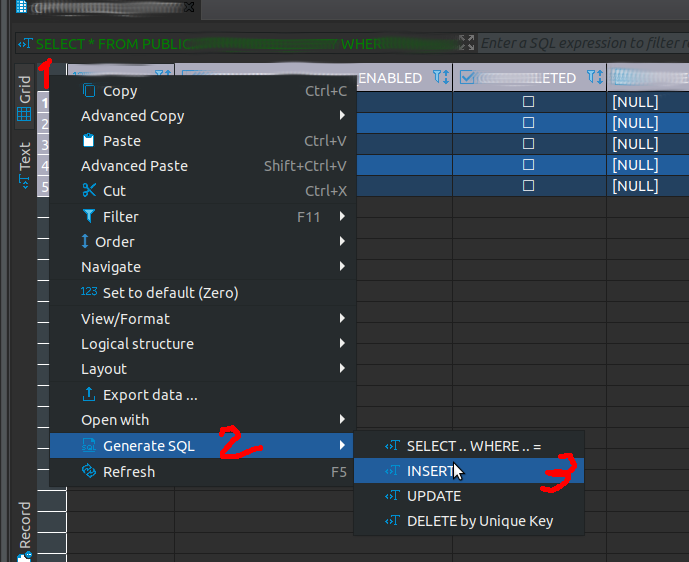 PS:当选择行的子集时,相同的菜单也只适用于那些行。