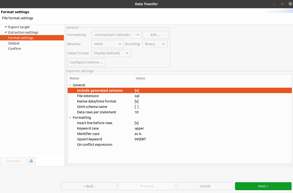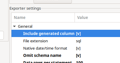 到目前为止,DBeaver版本22.0.5必须选择包含生成的列为true,如下面的屏幕快照所示,它将导出主/生成列。