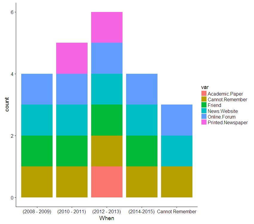 data <- data.frame("When"=c("(2008 - 2009)","(2010 - 2011)","(2012 - 2013)","(2014-2015)","Cannot Remember"),