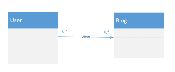 但是在用户查看博客方面,多样性是不同的,因为某个博客不仅可以被一个用户查看,所以类图如下所示: