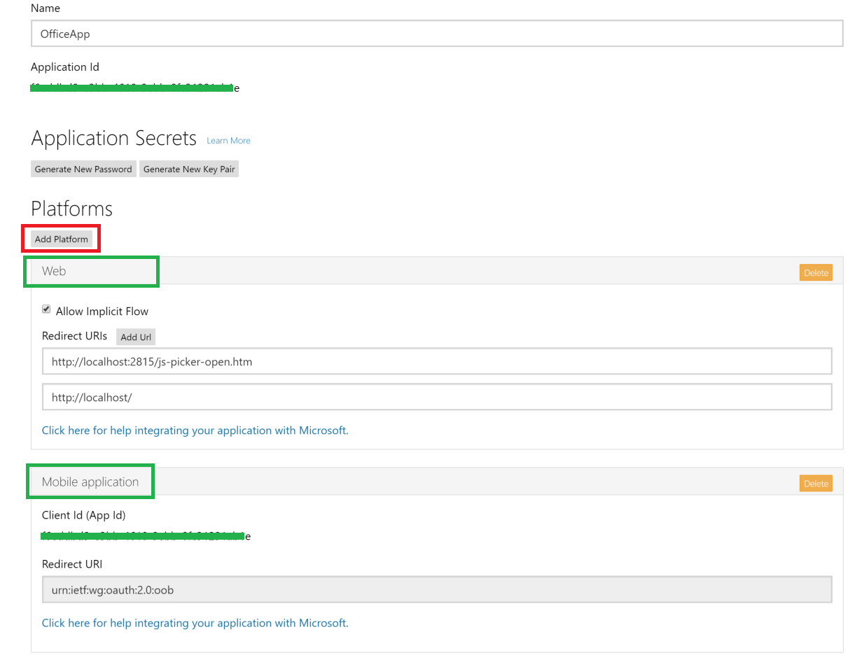 然而,应用程序注册在https://apps.dev.microsoft.com上支持多个平台。