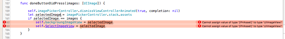 要进行分配,您必须将 PHAsset转换为UIImage,然后将该UIImage分配给UIImageView