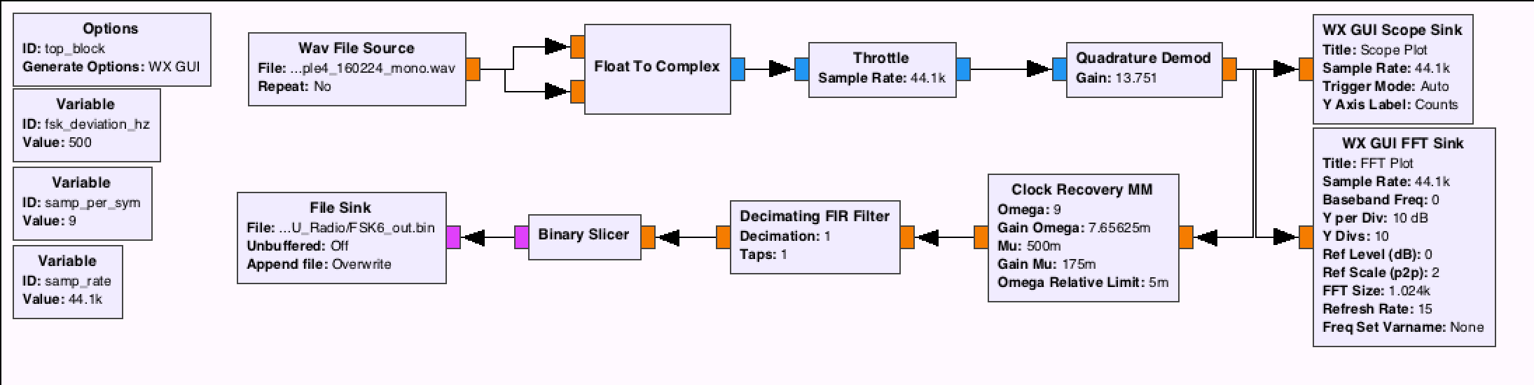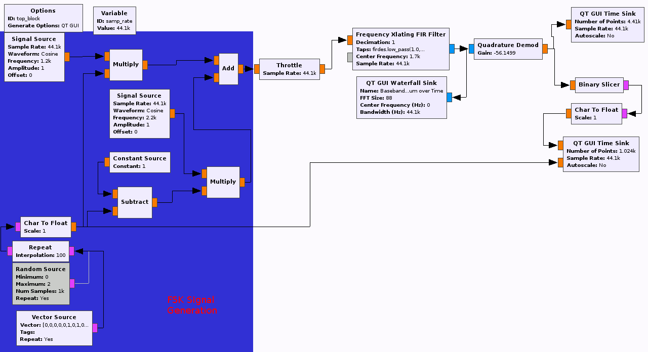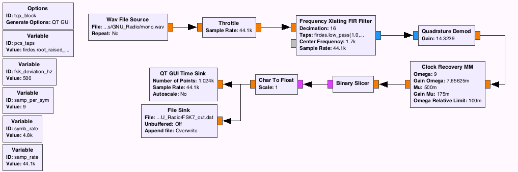 以下是基于Marcus的答案的更新流图的一个版本(也尝试使用多相时钟恢复的其他版本):