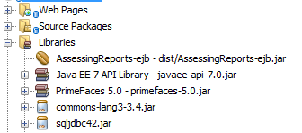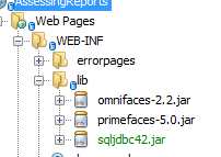 我还手动将sqljdbc42.jar放到WEB\WEB\lib中,然后重新启动NetBeans。中的罐子仍然是绿色的。