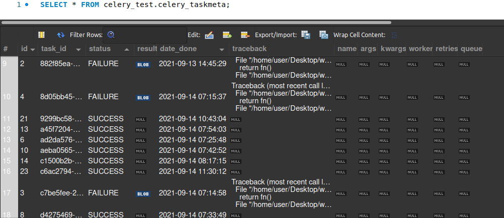 在这里,我使用了芹菜的默认设置和MySQL数据库作为result_backend。