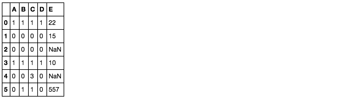 dfz = pd.DataFrame({'A' : [1,0,0,1,0,0],