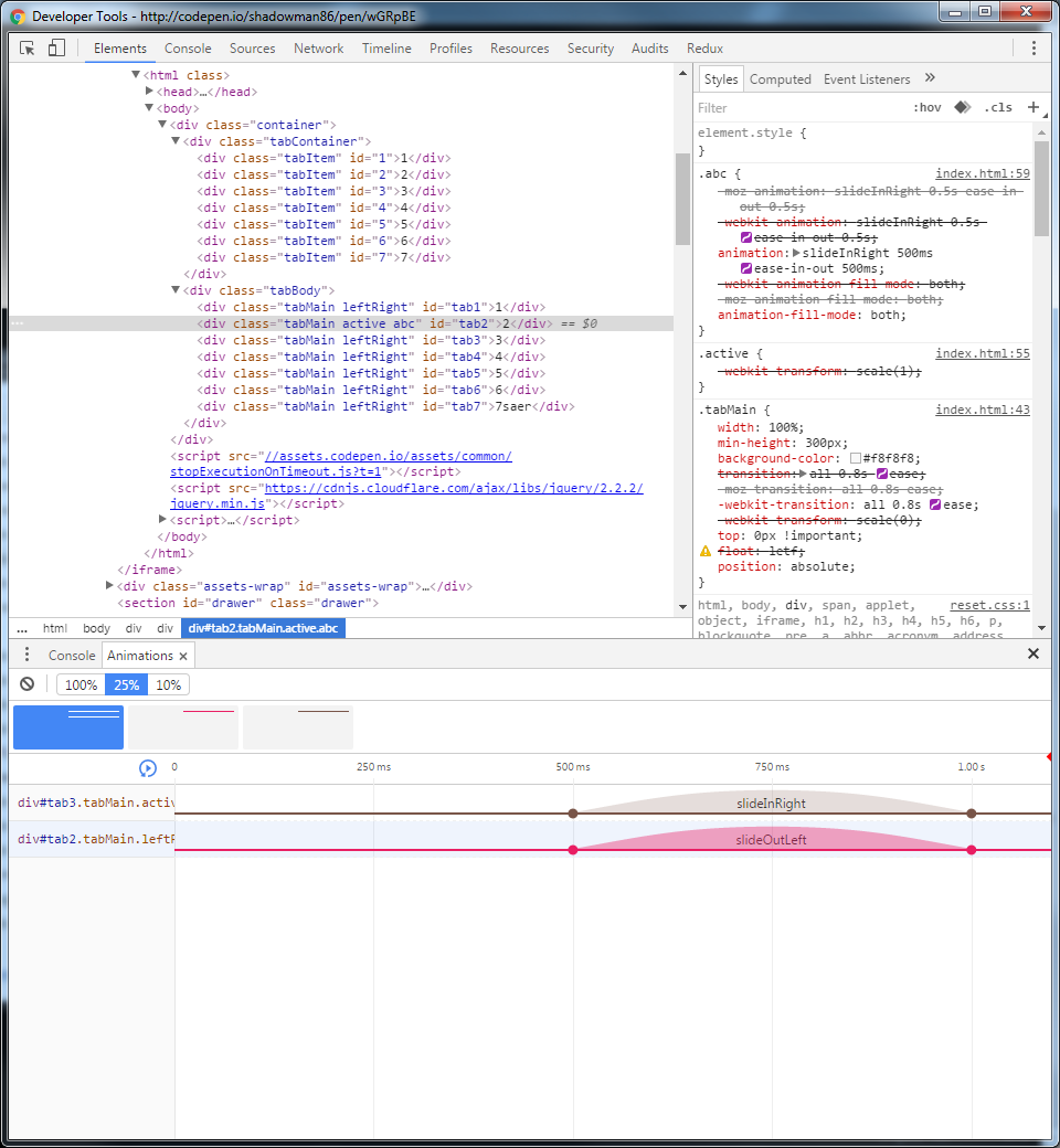 来制作一个简单的选项卡,但是有一个slideOutLeft