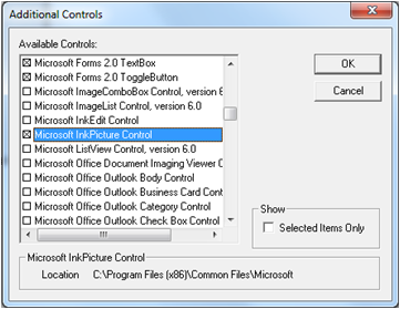 我在MSDN 数字墨水签名.概念和技术和InkPicture类上找到了一些材料,它们通过PictureBox/Userform在VB.net和C#上讨论Ink集合,再加上在另一个堆栈过流响应中的InkEdit控件,在这个堆栈过流响应中,我意识到VBAs工具箱有一个InkPicture控件附加控件,可以用来通过用户表单收集手写的eSignature。