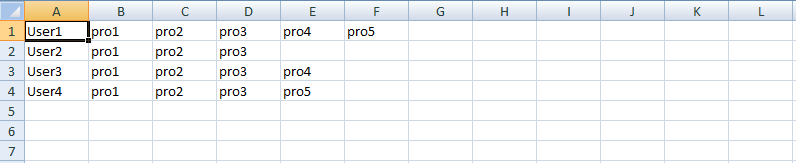 user1 | pro1 | pro2 | pro3 | pro4 | | |