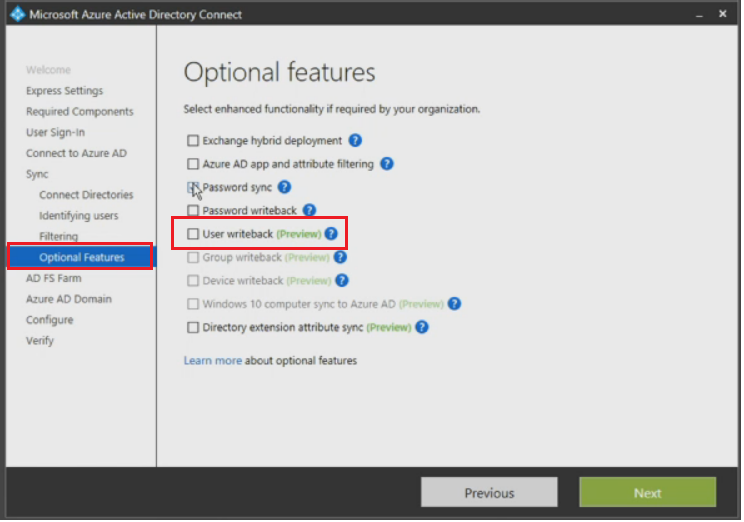这是预期的行为。Graph不处理用户同步部分。为了让用户在云上创建同步,返回到on-等离子体目录,我们可以在Azure连接中配置它,使用下面的图所示的选项: