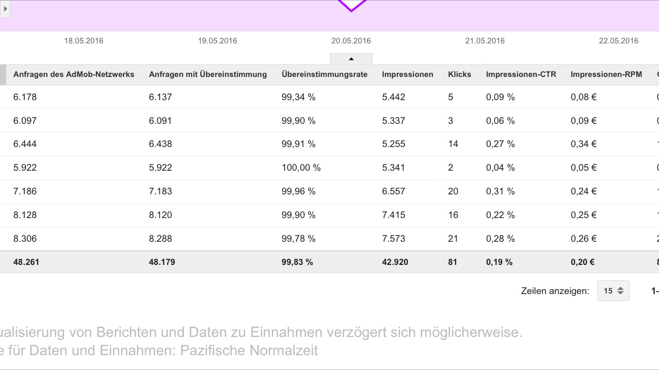 即使它非常依赖于应用程序本身,您的RPM也非常低。0.1-0.2欧元是完全不能接受的。请尝试将刷新时间增加到至少90秒吗?这肯定对你的收入有帮助。此外,你的收入取决于你的应用程序的用户人数。美国的RPM非常高,但俄罗斯的RPM要低得多。您可以尝试增加来自高RPM国家的流量。
