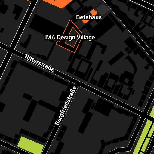 我不知道mapsforge呈现主题复制了GoogleMaps的样式,但是通过对mapsforge 资源中包含的osmarender主题进行更改,您可以任意选择地图的样式。通过我自己(非常简化)的主题,我在一张(非常本地的)地图上突出了一些建筑物。这里只有一块瓷砖: