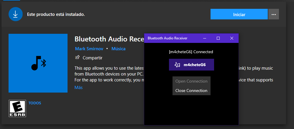 最后,从微软商店安装蓝牙音频接收器。打开它,选择你的android设备,点击“打开连接”,你就完成了!