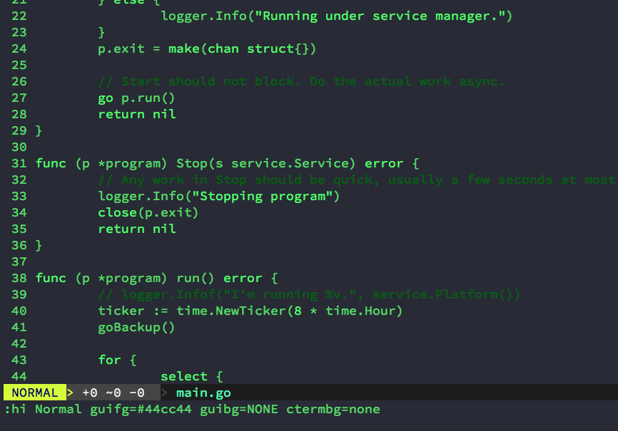 hi Normal guifg=#44cc44 guibg=NONE ctermbg=none