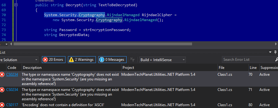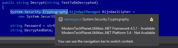 我在Visual 2015中创建了一个新项目Class Library (Package)。我想在MVC 6项目中使用这个项目。现在,它抱怨说,即使在我添加了对System.Security的引用之后,System.Security中也不存在密码。