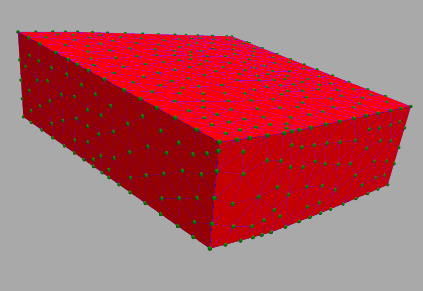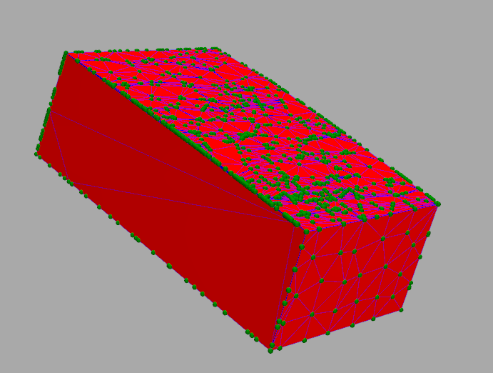 在上面的图像中,如果你看到切割表面,只有5个三角形和许多边缘是开放的。另外,表面上的三角形也是扭曲的。