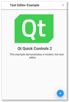 QtQuickControl2.1,自从Qt5.8发布以来,有一个名为RoundButton的QML类型,它在材料风格上具有提升效果。它被演示为文本编辑器示例中的浮动操作按钮
