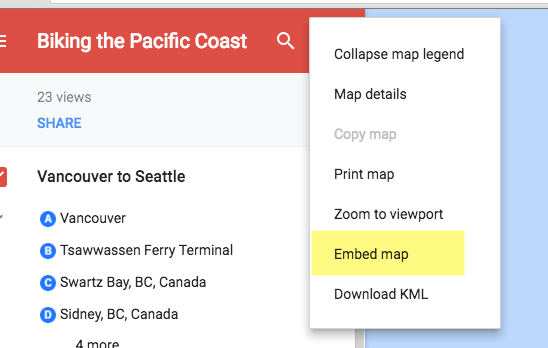 单击“3点”按钮并选择"Embed map“,即可获得此代码。