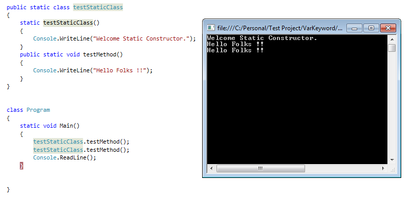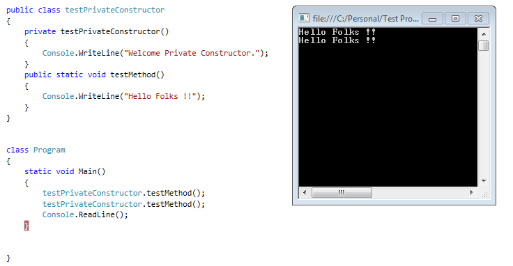 我创建了两个控制台应用程序,一个用于静态类,一个用于私有构造函数。