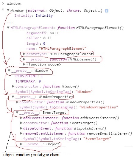 问题2:我有一个想法,所有原型对象(HTMLElement,Element,Node.)放置在窗口对象的根中(因为所有程序员的对象和原型对象都在放置窗口对象的根)。我查看了这个窗口根目录,发现有很多consctructor函数(它们的名称与原型对象(函数HTMLElement()、函数元素()、函数Node().)相同)。这些函数中的每一个都同时具有__proto__属性和构造函数属性。构造函数怎么可能有原型呢?构造函数只是在新对象中抛出属性(如this.propname)。我认为只有“典型”对象(var obj={name:1};
