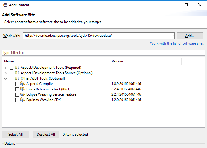 Eclipse 470000似乎就是对此的讨论。看起来代码的AspectJ部分已经移到Eclipse项目中,不再包含在Eclipse的Neon版本中。