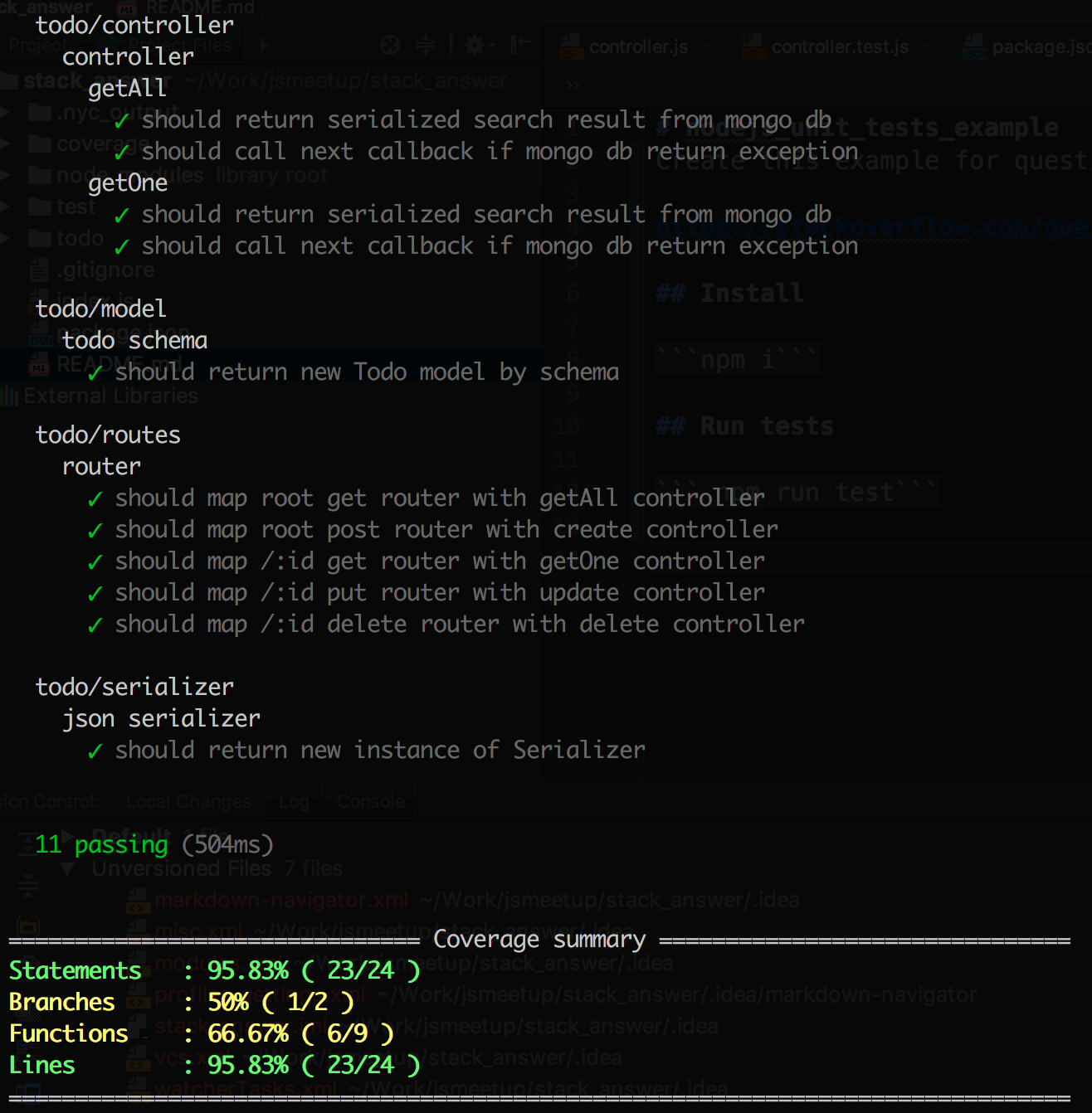 我正在使用Node创建一个API,但我很难理解如何正确地对API进行单元测试。API本身使用Express和Mongo (与Mongoose一起使用)。