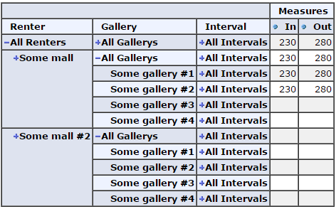 我有两个维度:商场,画廊。第一商场有画廊#1-3,第二商场有画廊#4。如何隐藏第一商场的第4画廊和第二商场的第1-3号画廊?